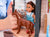 Clean and groom "Charlie" the horse with the shower and brush.